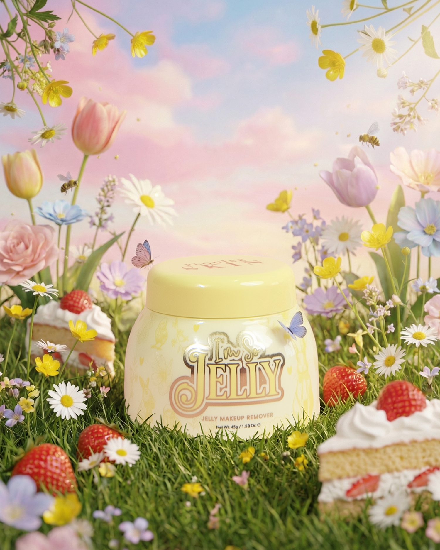 Cherry: I'm So Jelly: Aqua, Ethylhexyl Palmitate, Butylenglykol, PEG-8, Glycerin, Helianthus Annuus (slunečnicový) olej ze semen, kaprylová/kaprinový triglycerid, PPG-240/Hdi kopolymer Bis-Decyltetradeceth-20 Ether, So184apolyrate, Poloxamer, Poloxamer, Poloxamer Glycerylstearát, PEG-100 stearát, Aroma, hydroxyacetofenon, benzoát sodný, fenoxyethanol, karbomer, aminomethylpropanol, tokoferol, laurát draselný, extrakt z Fomes officinalis (houby), extrakt z kořene Sophora Flavescens, extrakt z Scutellaria Barilix, Sallow Baicalensis 1,2-hexandiol, extrakt z kořene Glycyrrhiza Inflata, extrakt z Violy tricolor, mateří kašička, FD&C Blue No. 1(CI 42090)
