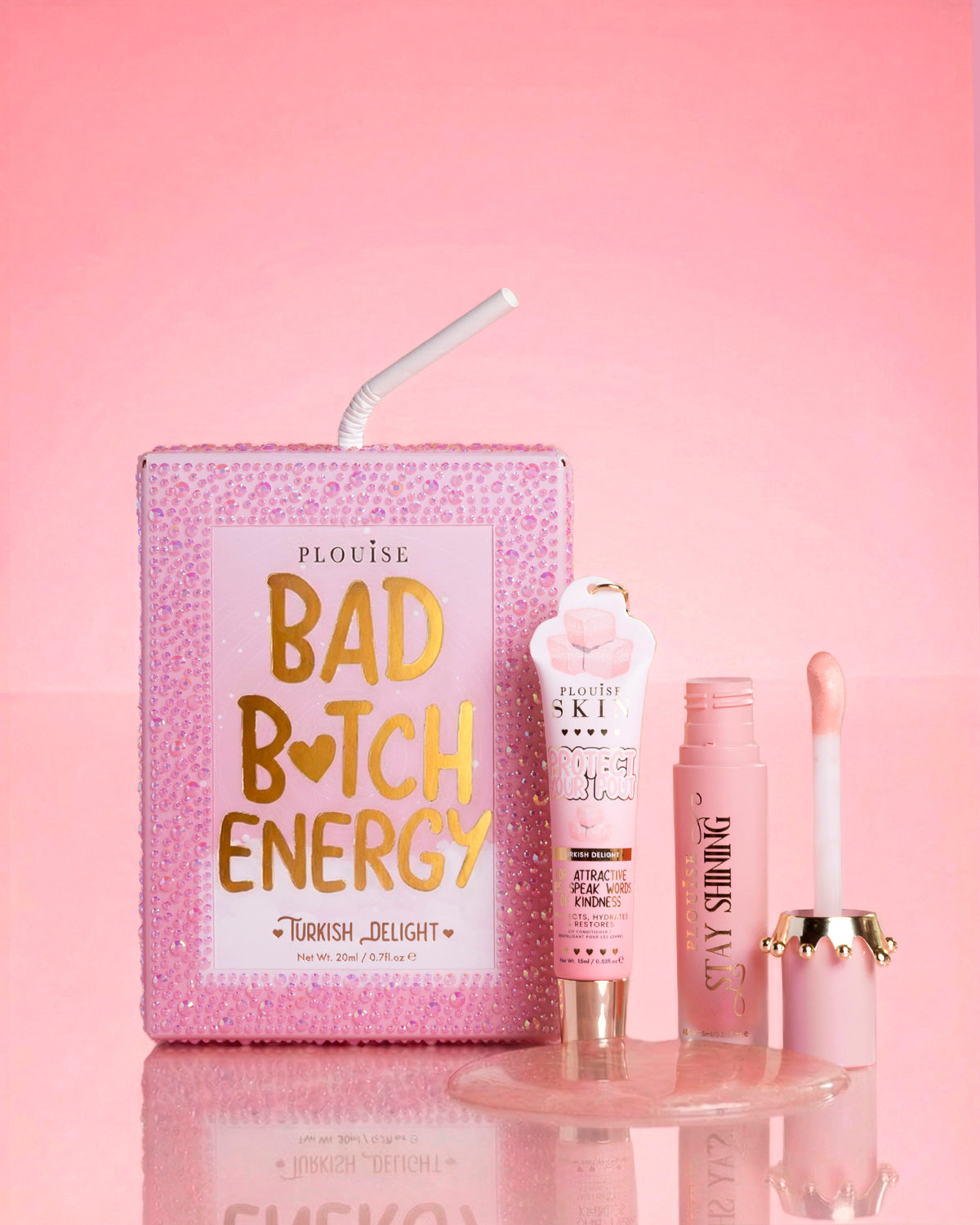 - Glitter Bad B*tch Energy Lip Conditioner: Hluboce vyživující a hydratační kondicionér na rty s třpytkami udržuje rty jemné, hladké a připravené na cokoliv. Perfektní pro udržení plyše a ochrany po celý den.